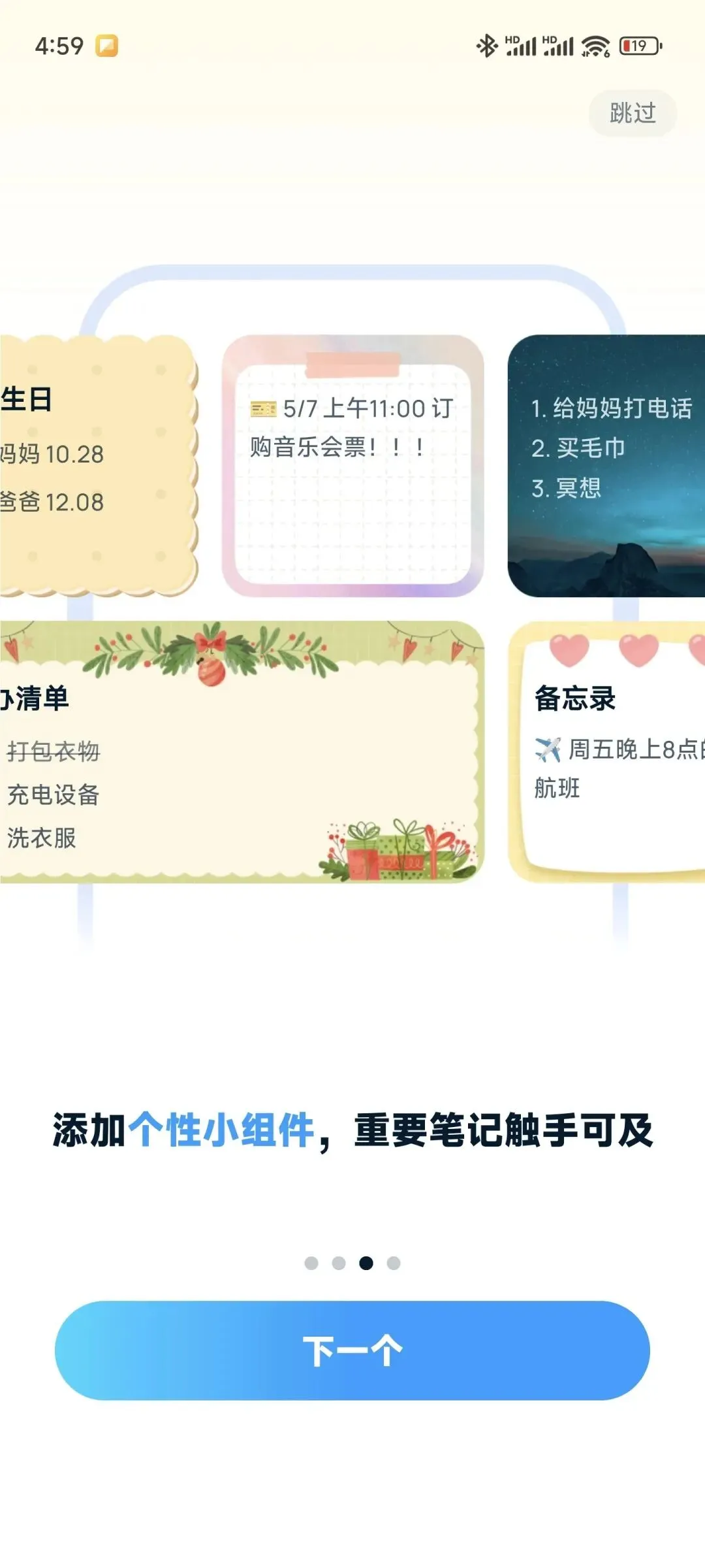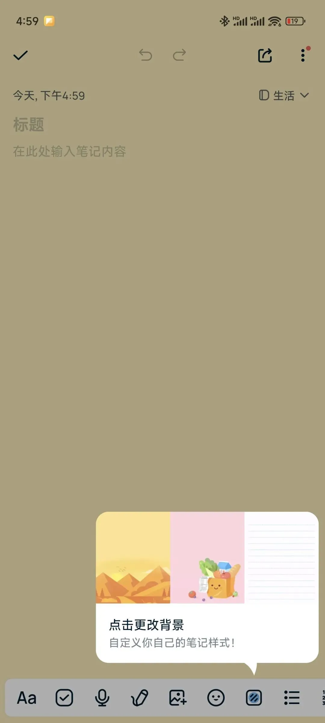 界面设计非常清爽,核心功能一目了然。无论是记录文字手记,还是管理待办事项,都能快速完成。它支持添加照片和音频,让记录方式不再单调。