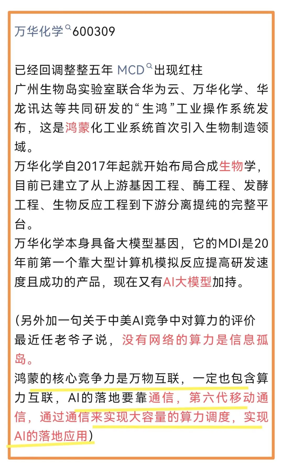 推荐了万华化学时候有聊到