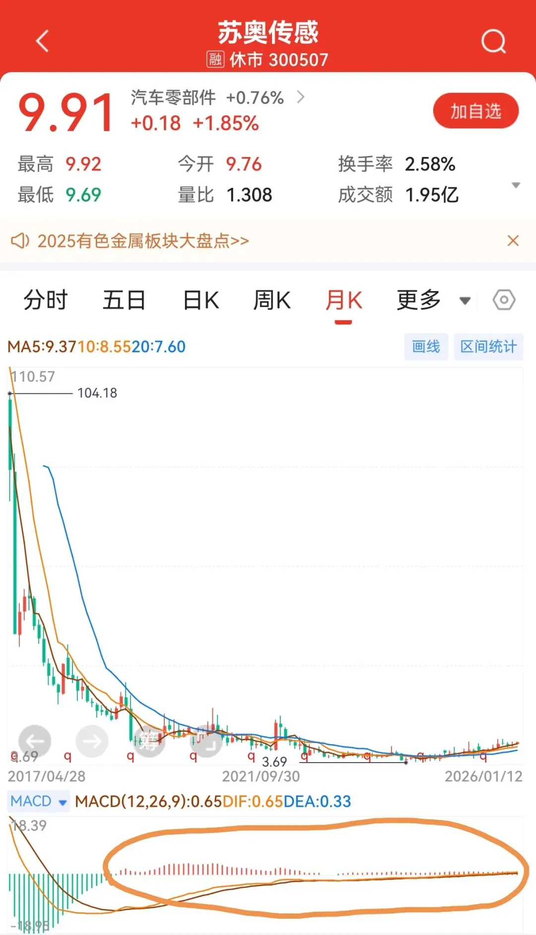 这里面300507苏奥传感的月K线有点意思
