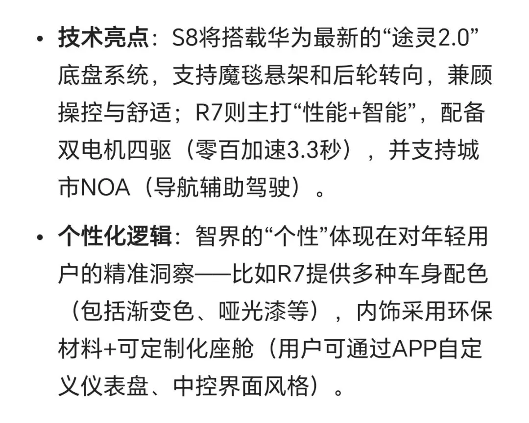 - 个性化:从智界R7的“年轻轿跑”到傲界X1的“硬派越野”,满足不同用户的细分需求,让“个性化”不再是小众标签。