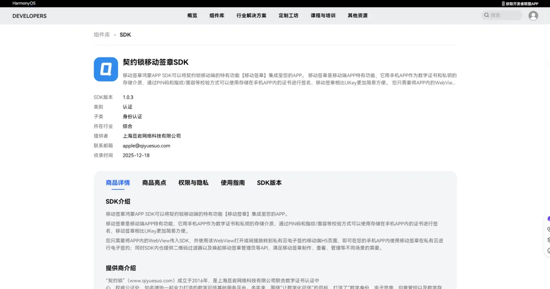 近期,契约锁移动签章SDK鸿蒙原生版、物理用印SDK鸿蒙原生版相继上架鸿蒙生态市场,这标志着,契约锁全线移动端已全部完成鸿蒙化适配,可以基于HarmonyOS NEXT原生系统为政企提供合规、便捷的电子签章与实体印控服务。