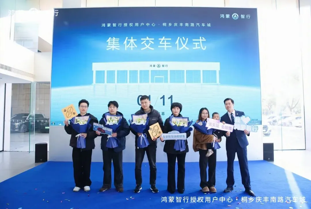 5位首批车主作为“鸿蒙智行生态首批见证者”登台。鸿蒙智行以“人-车-生活”全场景智慧生态为核心理念,集体交车仪式不仅是车辆交付的物理动作,更是品牌、店端与用户、智慧出行愿景与现实场景的深度联结。
