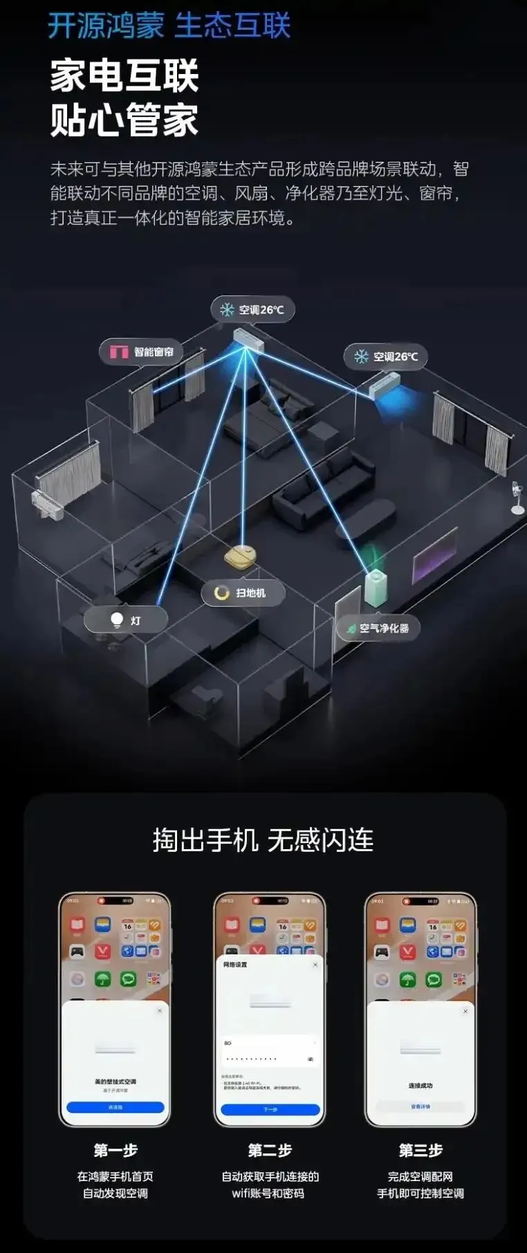 想象一下:炎炎夏日,你驾车快到家时,通过车机语音就能提前启动空调,回到家即刻享受清凉;离家时,空调自动进入节能模式,与家中其他鸿蒙设备协同管理能耗。这便是全场景智慧互联正在照进的现实。