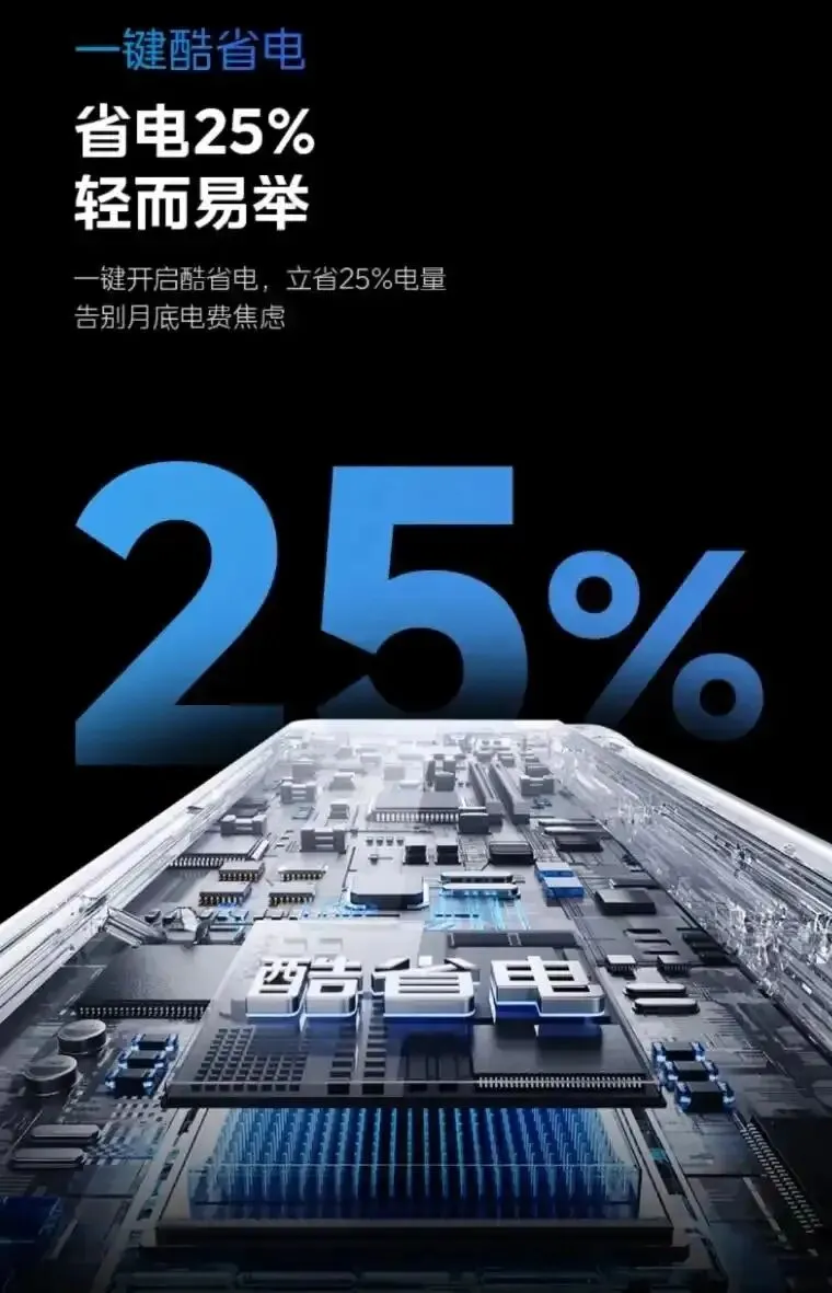 配合其宣称的“一键酷省电”功能,最高可节省约25%电量。