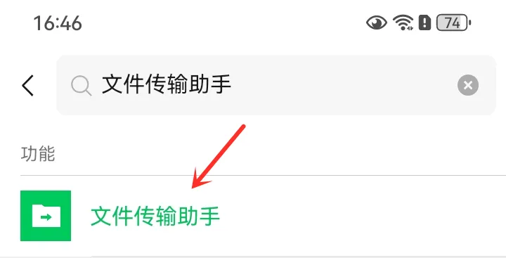 但是在微信聊天列表中没有找到“文件传输助手”怎么办?只需要点击右上角搜索图标,并输入:文件传输助手,然后点击功能下的“文件传输助手”,即可进入聊天窗口发送图片或文件了。