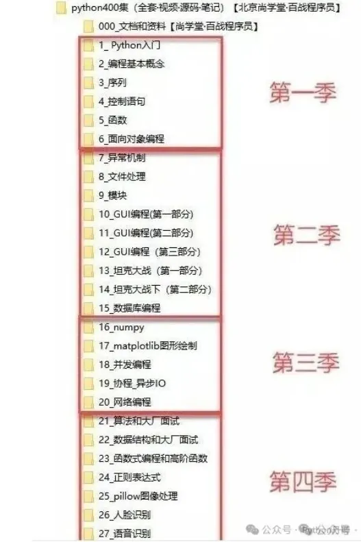 - 第二季提高篇:深入面向对象编程、异常处理、文件操作等进阶知识,代码能力实现质的飞跃。