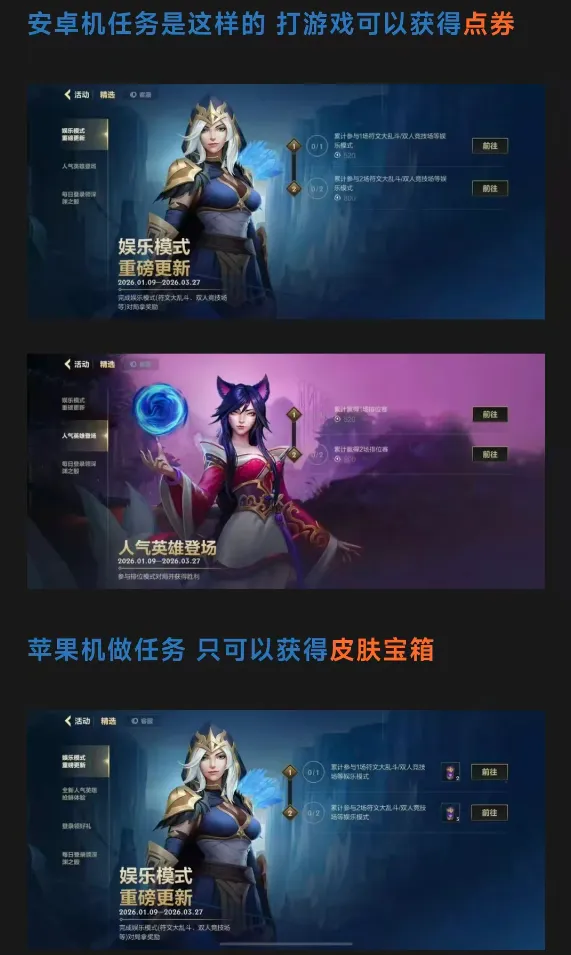 真的是策划听劝版!前几天刚发现苹果端和安卓端体验服的奖励不一样!安卓送点券 而iOS居然是皮肤宝箱!