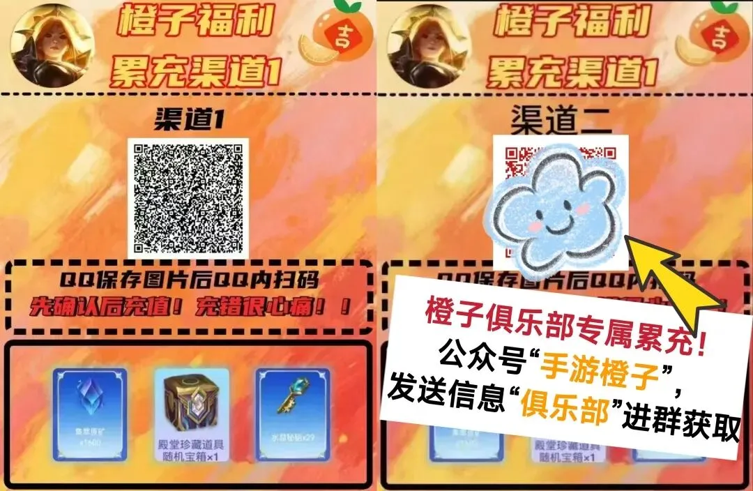 橙子俱乐部专属累充!奖励更丰富!在公众号 “手游橙子”,消息发送“俱乐部”三个字获取!可以额外获得累充奖励!