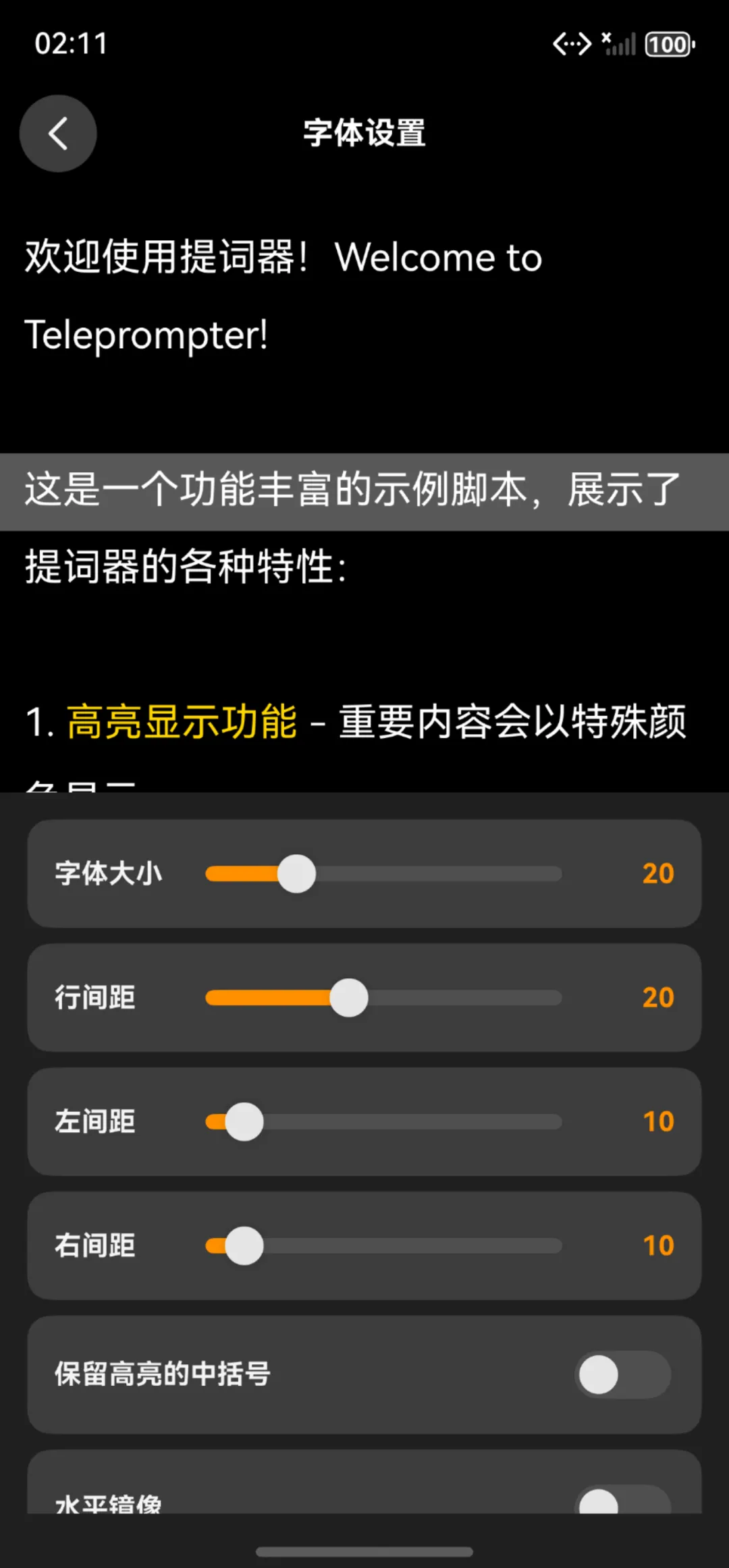 这是一个鸿蒙的提词器,我需要设置一些字体相关的配置,下面是UI效果