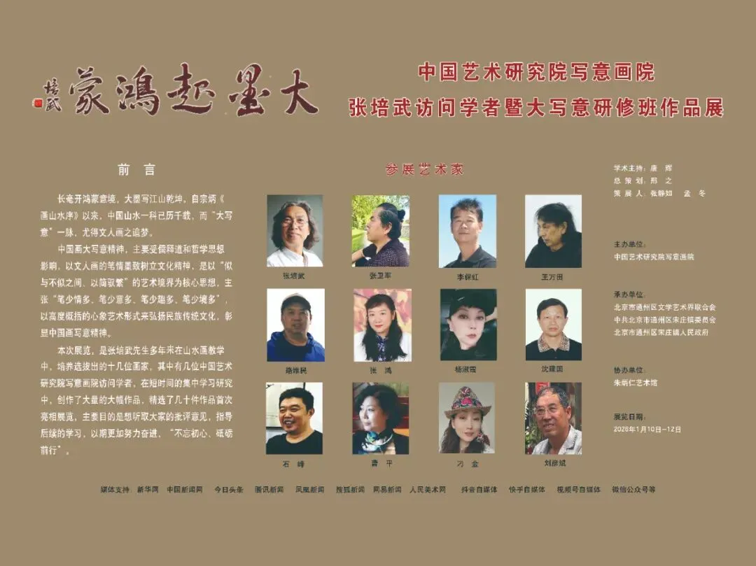 2026年1月10日下午三时,“大墨起鸿蒙”——中国艺术研究院写意画院张培武的访问学者暨大写意山水画研修班作品展在北京朱炳仁艺术馆隆重开幕。