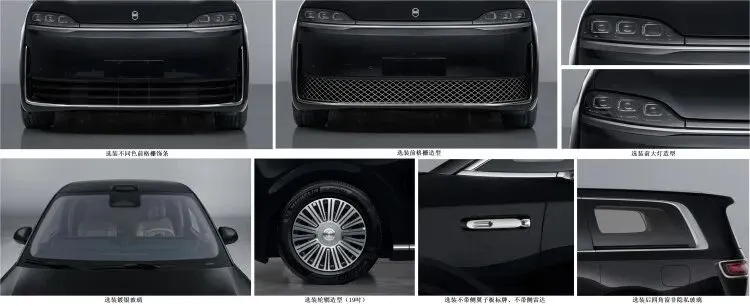 此次曝光的申报图显示,它会提供两种不同样式的下包围,对应的应该就是增程和纯电两种动力版本,其中横向饰条的就是增程版本,而网状饰条的就是纯电版本。