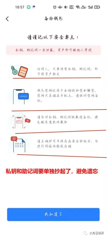 ⇒用另一部手机拍照助记词,或按照次序手抄12个助记词