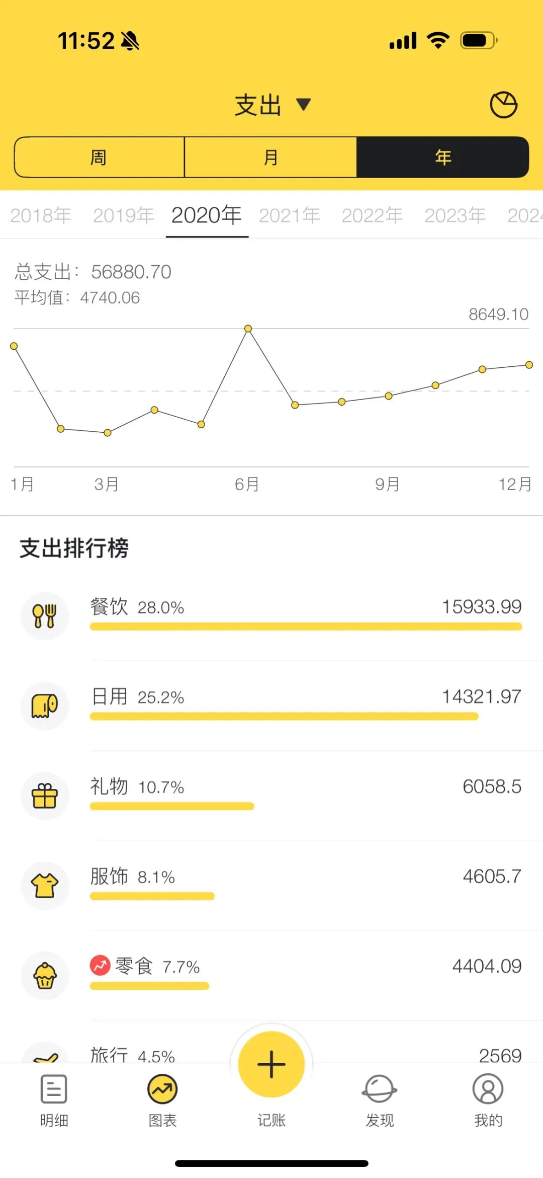 但到了年尾,发现自己还是希望能看到一年消费的总结,能翻看过去消费的明细,看看跟过去是否有什么不一样。