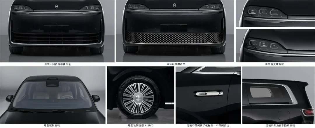 分体式大灯造型锐利,配合可定制的前格栅饰条、不同样式的前格栅造型,让车头的辨识度与个性化兼具。19寸多辐式轮毂精致感拉满,隐私玻璃、镀银玻璃等选装配置,更是把豪华细节拉到了50万级MPV的水准。