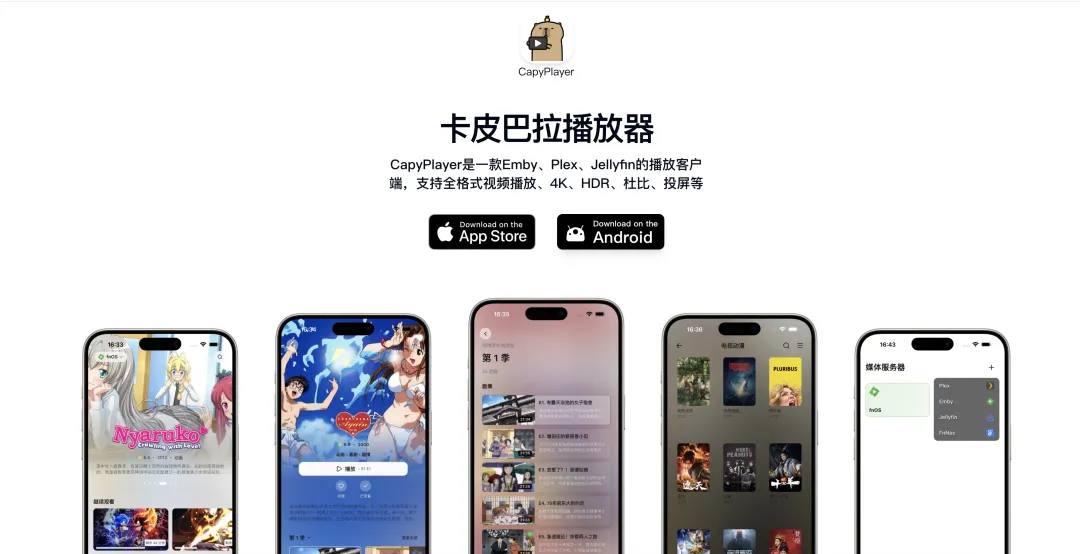 深度集成了Plex、Emby、Jellyfin、飞牛Nas等专业媒体服务器,支持4k hdr 杜比等高端格式,后续肯定也会支持国内网盘。安卓苹果都有客户端。有需要的可以备一个。