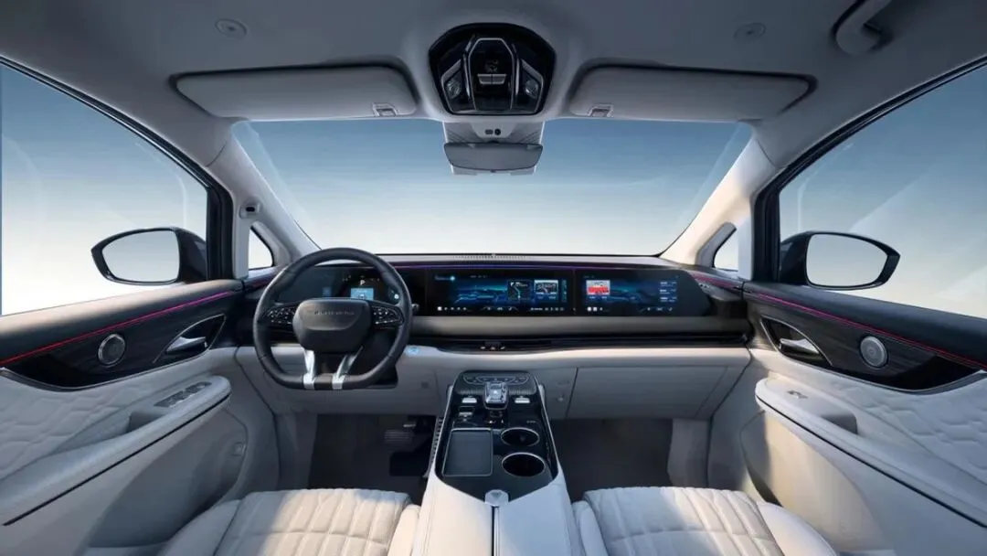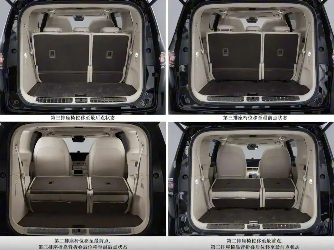 进入车内,智界V9的内饰布局同样凸显了“科技豪华”的核心思路,前排座舱采用了与问界M9相似的三联屏贯穿式设计,构建了较为强烈的数字化驾驶环境。根据申报信息,中央扶手后方预计还为后排乘客提供了独立的触控屏幕,体现了对全车乘员交互体验的考量。