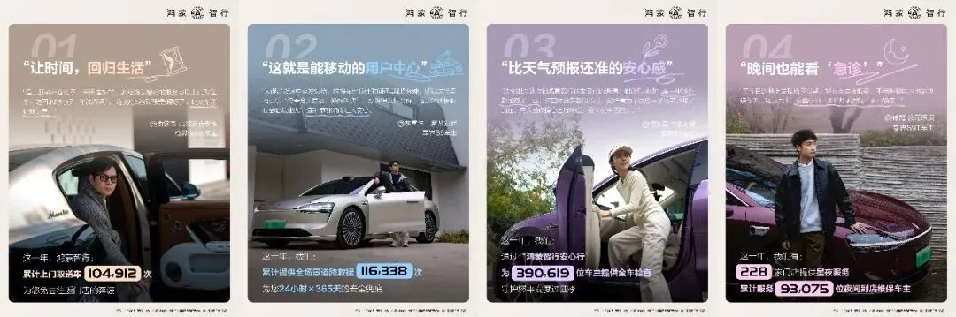 而这两位只是鸿蒙智行服务人员小小代表和缩影,背后还有千千万万这样用心对待车主,把车主的需求放在首位的售后人员。也正是有他们这样一群人,贯穿了2025年的时时刻刻,你看《鸿蒙智行2025用户服务报告》中:累计上门取送车104912次;车辆出现故障,还有365天x24小时在线的全场景道路救援116338次;遇到重大节假日还有安心行为390619位车主提供全车检查;更有228家门店提供星夜服务,让93075位夜间到店的车主得到服务;24小时热线更是接起了1433051通电话;更别说各种车友活动、车辆救援券还能赠送亲人。
