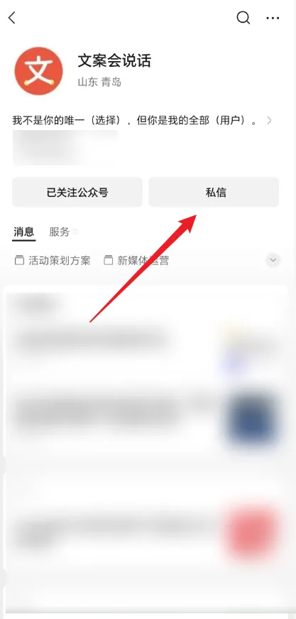 在界面中,关注后并点击【私信】选项。