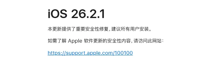 在网站日志中,确认苹果工程师正在测试 iOS 26.2.1 系统。