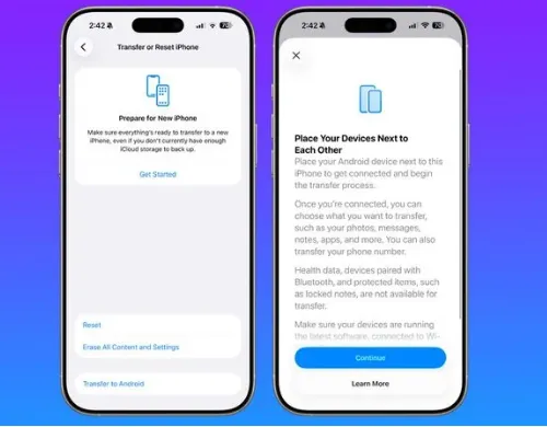 最受关注的莫过于全局上线的iPhone转安卓迁移功能,之前Beta 1里还藏着掖着,这次直接开放给所有机型。入口在“设置-通用-转移或还原iPhone”里,找起来不费劲,不用装第三方APP,靠Wi-Fi和蓝牙就能直连。我拿备用机测了下,50GB左右的照片、短信和备忘录,传完大概花了22分钟,速率还算稳,照片的Live动态效果和EXIF信息都没丢,就是健康数据和加密备忘录还不支持迁移,算是留了个小遗憾。