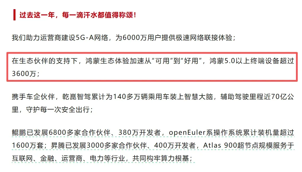 近期,华为轮值董事长孟晚舟在2026年新年致辞中披露,鸿蒙5.0以上版本终端设备激活量已突破3600万。
