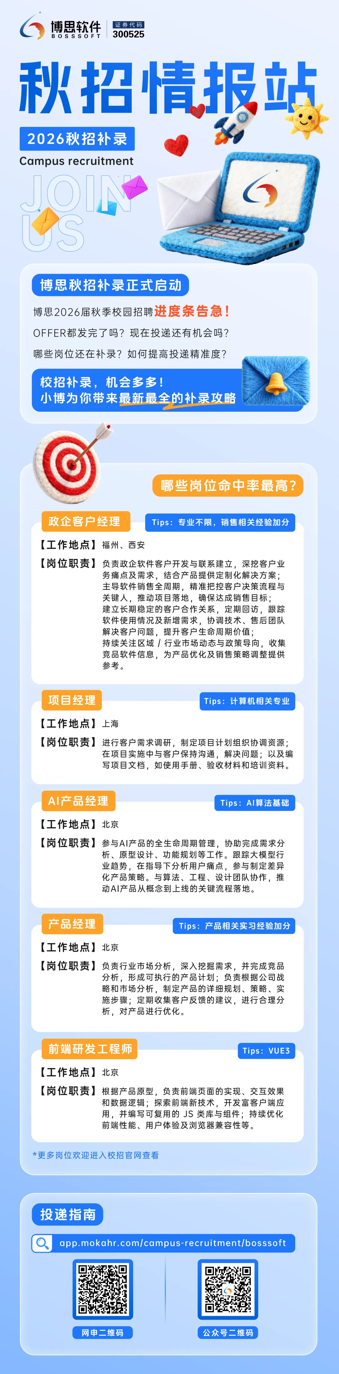 >招聘推荐 | 博思软件2026届秋招补录正式开启!