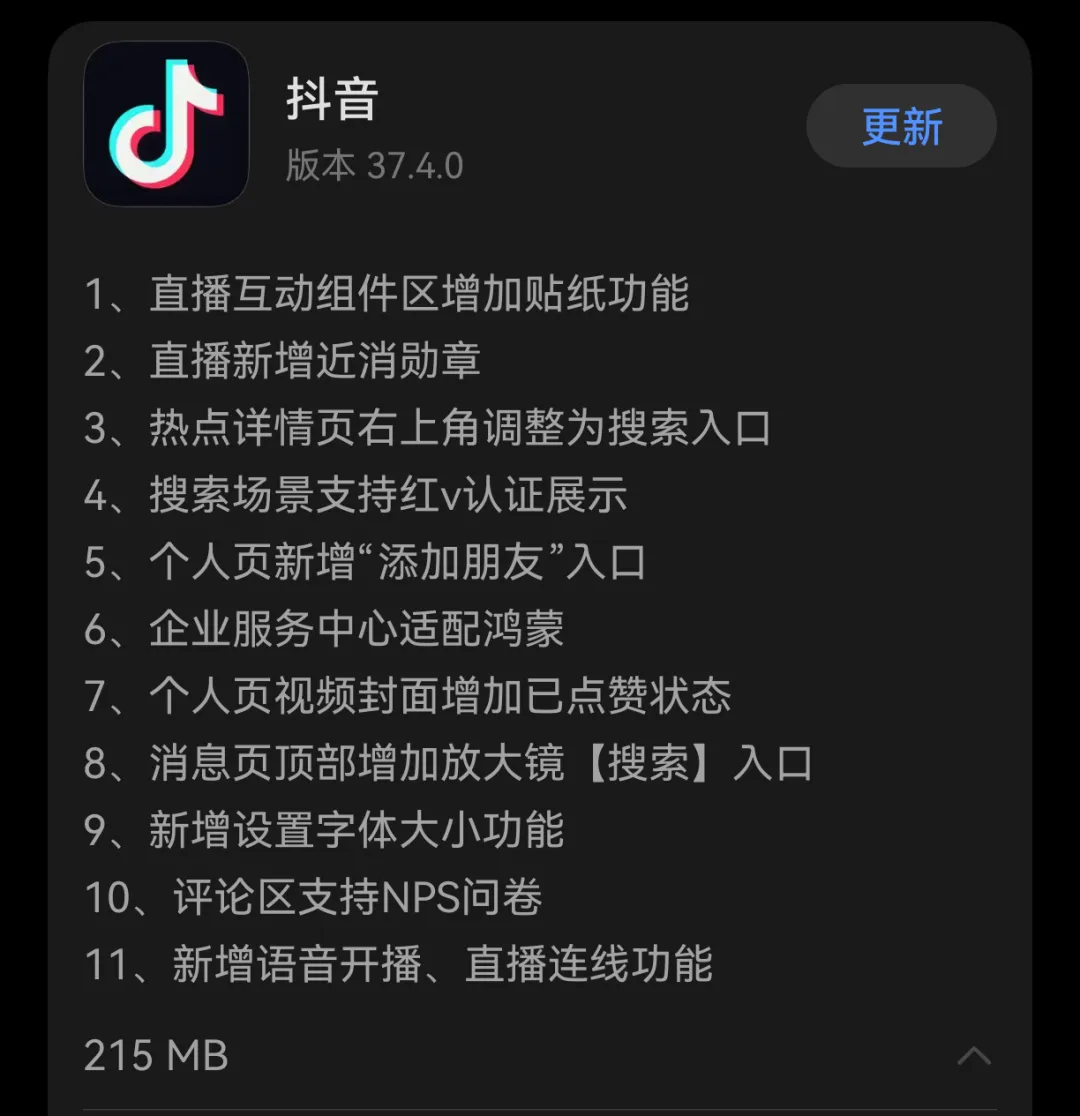 >抖音鸿蒙版 37.4.0 更新
