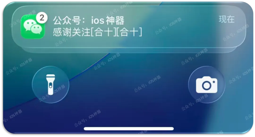 先看看以前,iPhone 锁屏界面在到任何信息都是显示默认绿色微信图标。