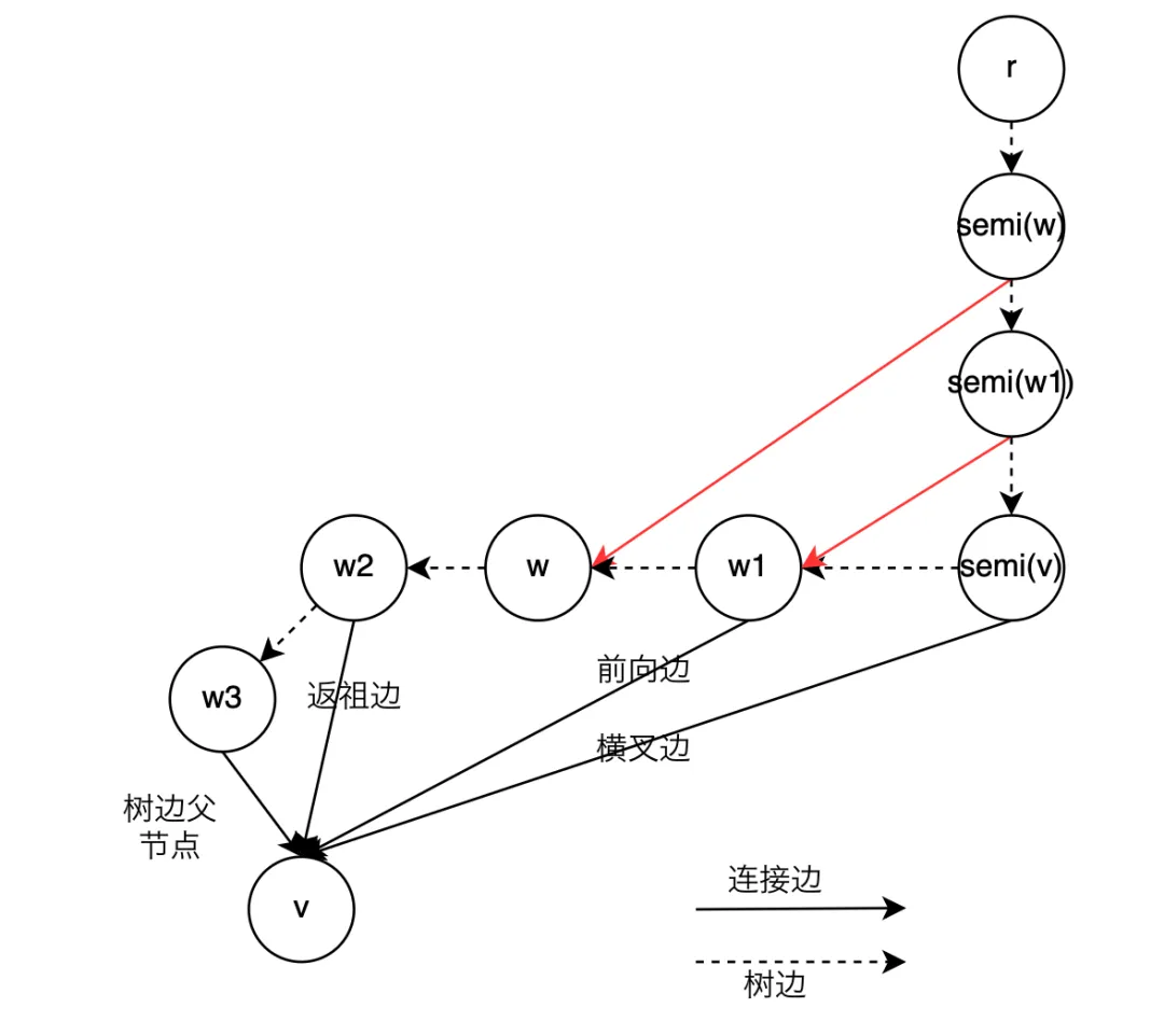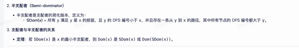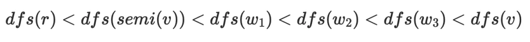 最远祖先节点(⽐当前节点dfs序⼩的节点只有可能是祖先节点或者左⼦树节点,dfs必须遍历完左⼦树再遍历右⼦树,左⼦树节点不可能存在到右⼦树节点的边,只可能是祖先节点)。由半⽀配节点的定义可得:
