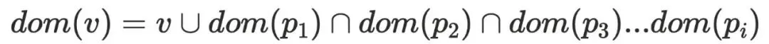 3. 对于⾮根节点 n , Dom(n) = n ∪ (∩Dom(p)) ,即当前节点 n 并上所有前驱节点 p的⽀配节点的交集