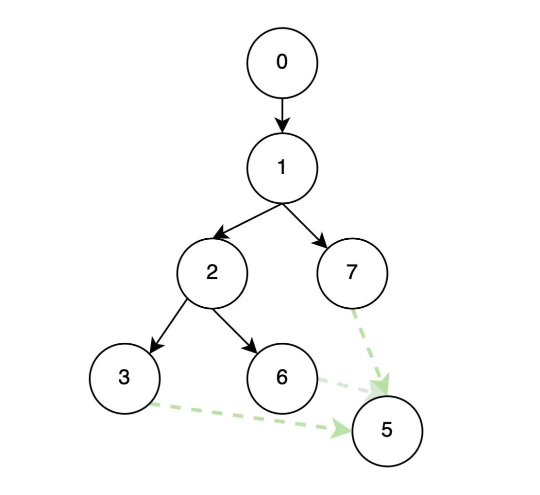 。但实际上还存在0->2->3->5这条路径不经过1号节点,实际上