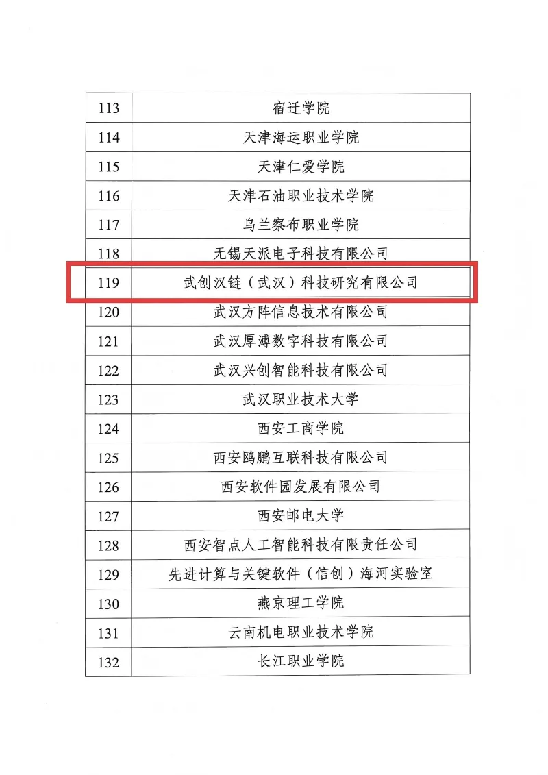 近日,工业和信息化部人才交流中心正式发布《关于公布鸿蒙人才发展促进工作组首批成员单位的通知》,武创院区块链产业研究所(武创汉链(武汉)科技研究有限公司)成功入选首批成员单位。