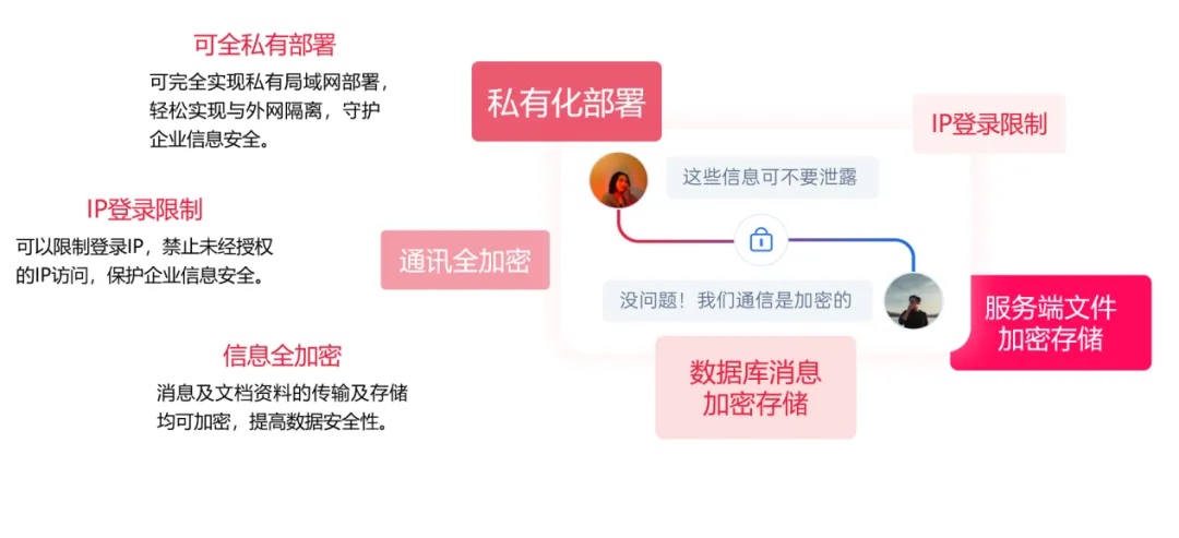 •全链路加密:软件默认采用 HTTPS 与 WSS 高级加密协议,配合服务端文件加密存储和 IP 登录限制,为集团构筑了银行级的安全闭环。这种对数据的绝对掌控感,是任何公有云应用无法提供的。