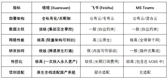- 如果您集团视数据为主权,追求极致的安全隐私与信创合规: 特别是涉及核心技术研发、商业情报保密的单位,推荐首选喧喧。它能以最低的硬件开销实现 100% 的物理隔离,且资产化模式让 IT 投入更为划算。