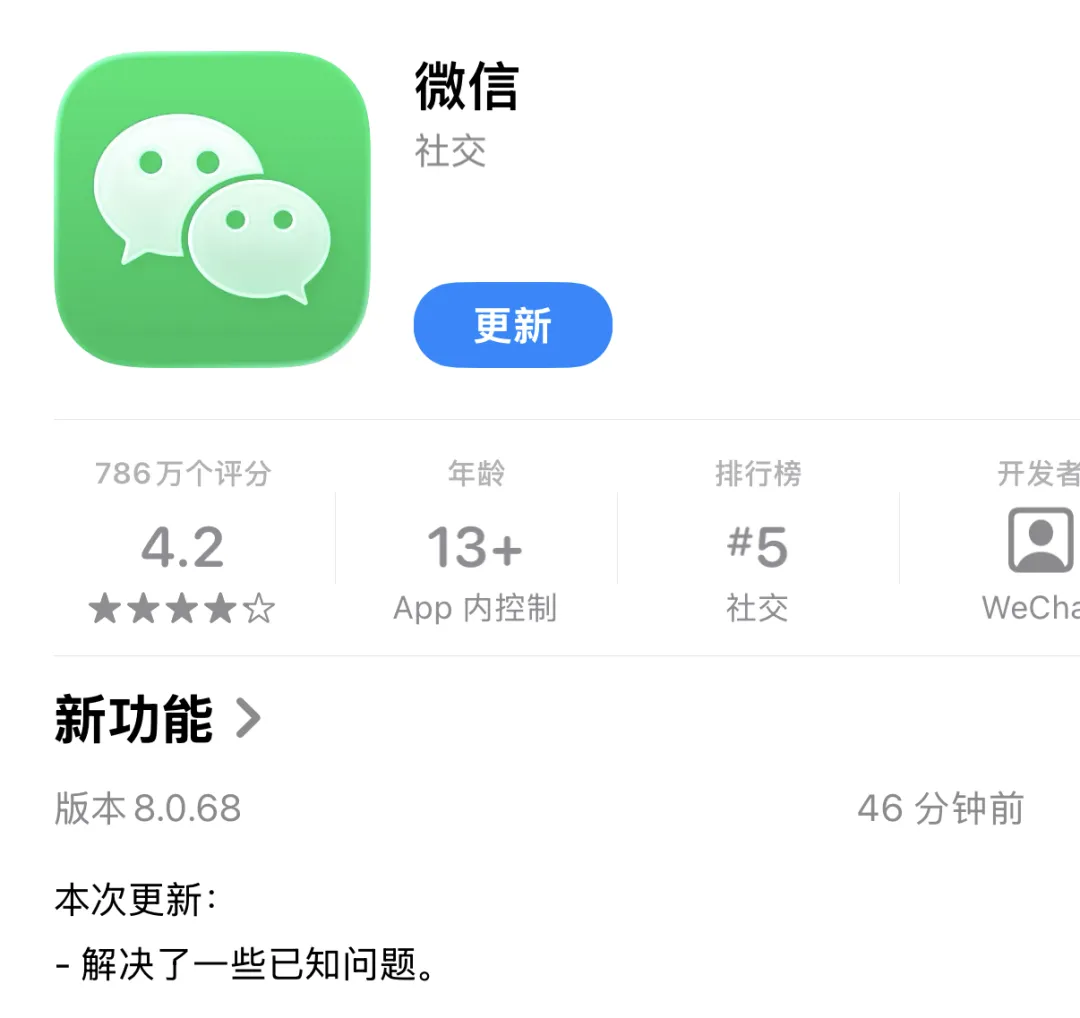 刚刚,iOS 微信 8.0.68 正式版发布,这是微信在 2026 年的首次正式版更新。更新日志依然是,主要“解决了一些已知问题” ,没有提及具体的新增功能。