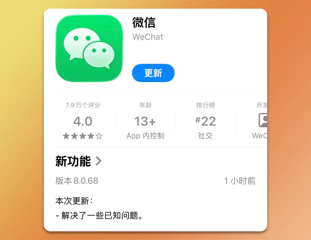 刚刚,iOS 微信迎来了 8.0.68 正式版更新,更新说明依旧是解决了一些已知问题!
