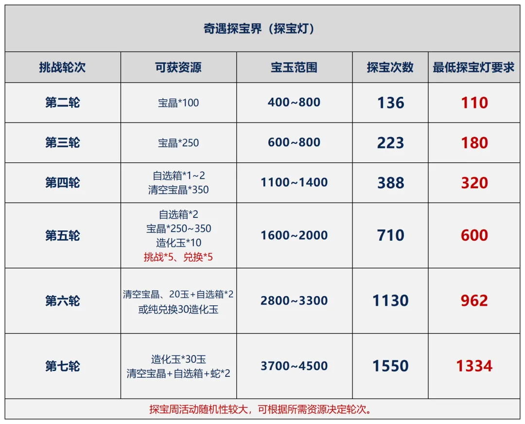 奇旅:也是新类型活动,类似代替祈愿的活动内容,虽然资源和玉增加,但同样是更看脸了,一般会投放古宝套,并且造化玉数量根据5~30个左右。