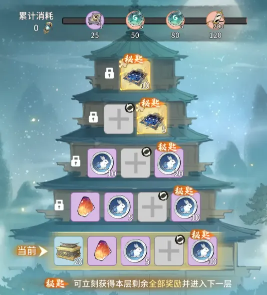 仙塔:新类型活动,相比此前的直接根据购买礼包数量领取奖励,仙塔类的活动更靠运气,一般一同投放新的活动功法和本命铸宝,造化玉数量普遍10个。