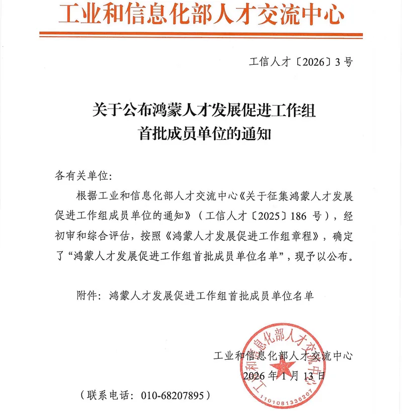 >工信部关于公布鸿蒙人才发展促进工作组首批成员单位的通知