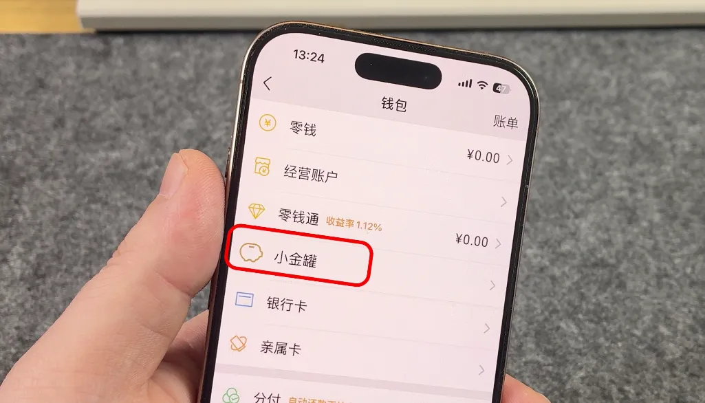 点击钱包,进入新的页面后,这里新增了一个名为「小金罐』的功能,这类似于某付宝的小荷包。