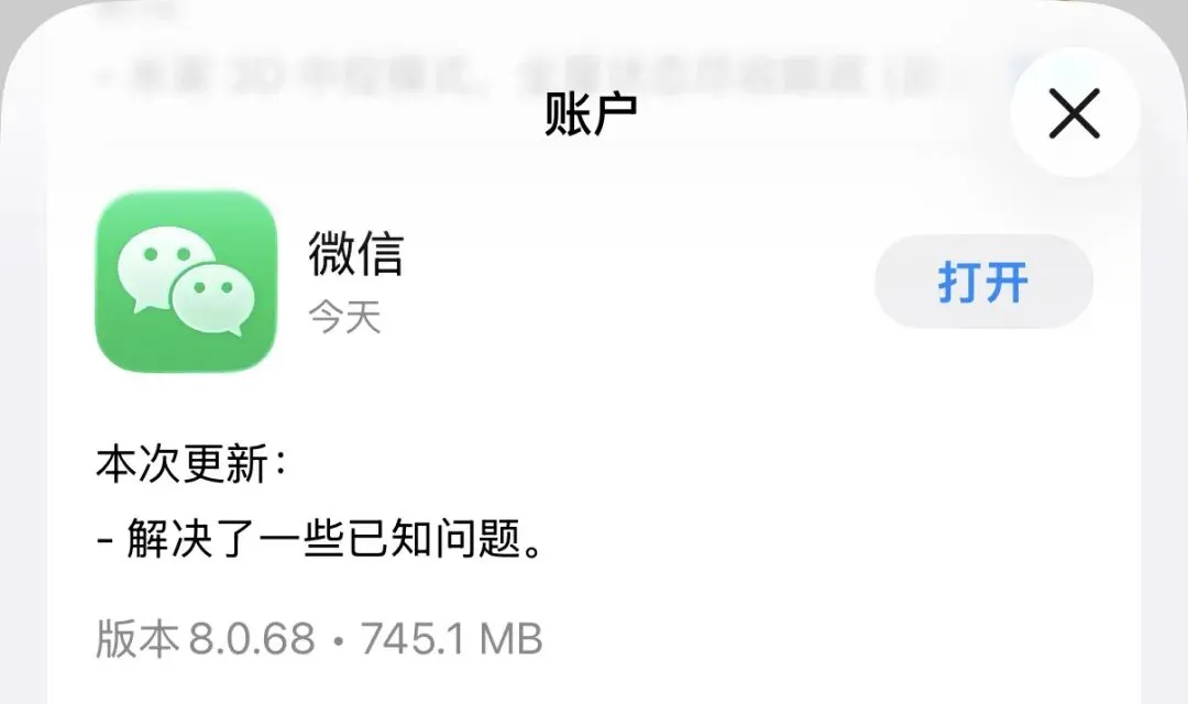 | ✨ | 微信8.0.68更新 iOS微信8.0.68正式版来袭,深色图标适配仍未安排,更新日志延续“修复已知问题”,功能多源自前期灰度测试。 |