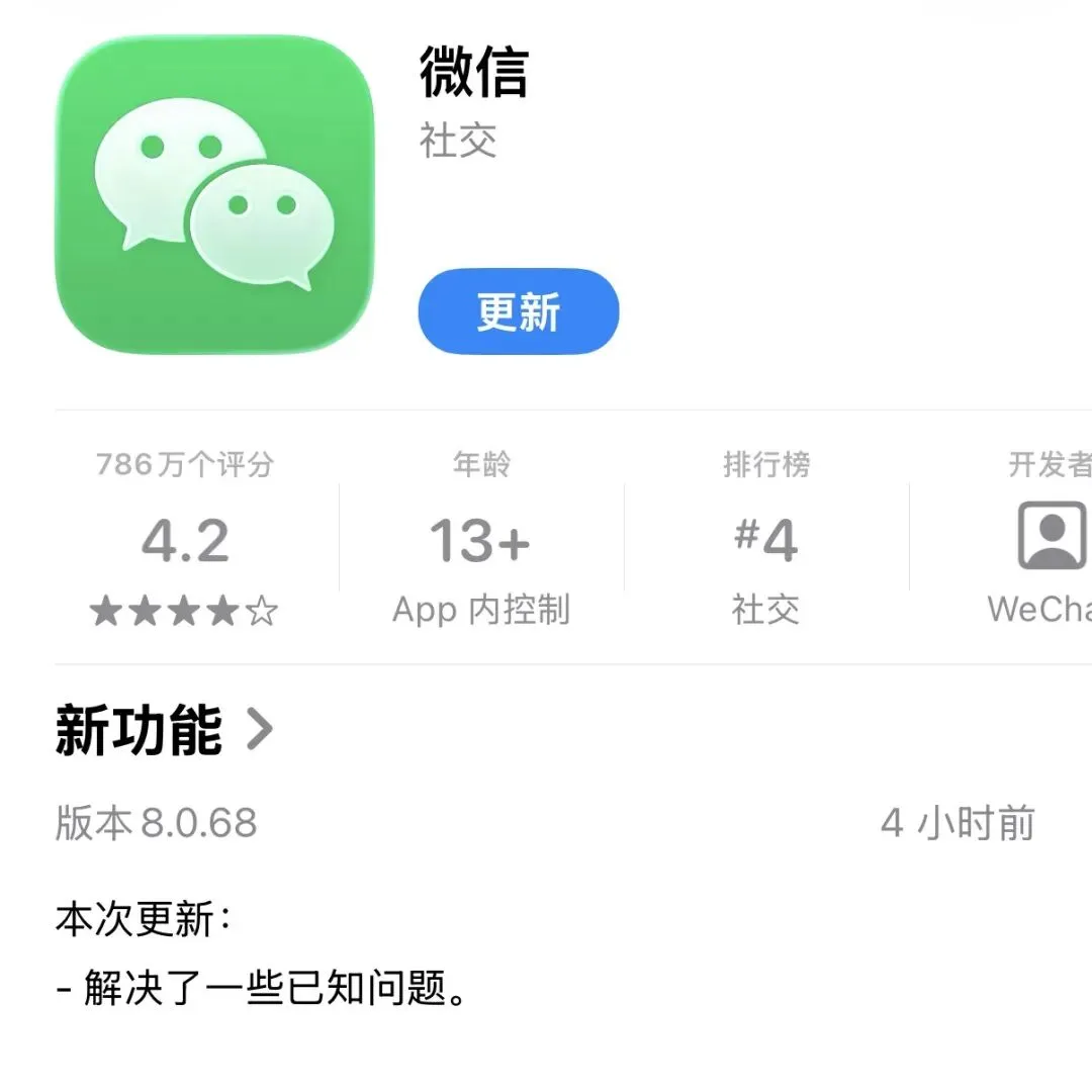 今天,iOS 微信发布了 8.0.68版本更新,更新日志显示解决了一些已知问题。