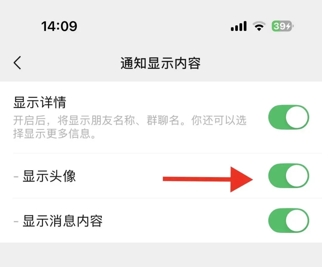 不过更新后发现,在微信的设置中增加了显示头像的开关。在设置-通知-通知显示内容里,出现了“