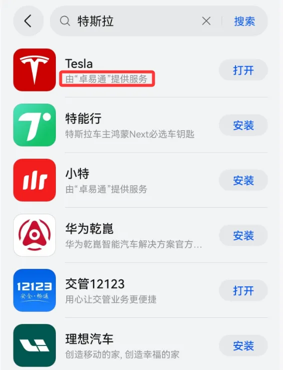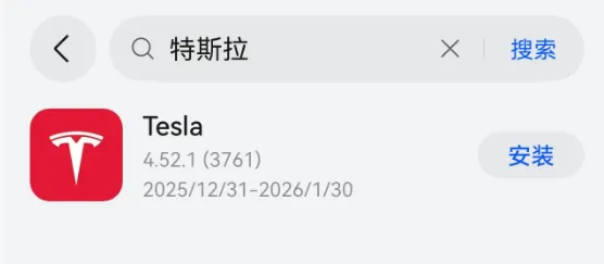 正常应用市场里是搜索不到鸿蒙版特斯拉APP的。