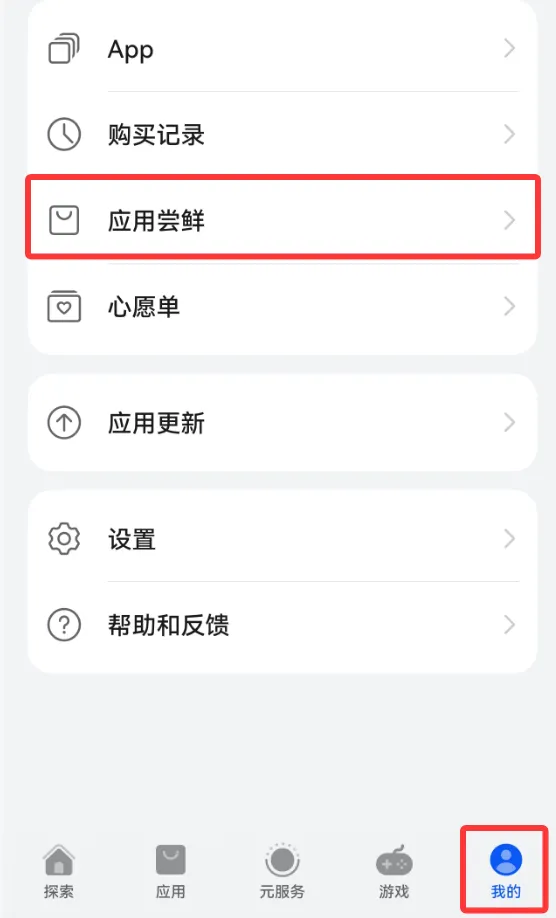 - 在个人中心页面找到「应用尝鲜」专区(划重点!不是常规的应用分类);