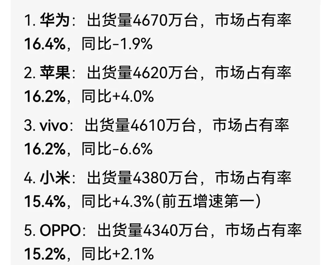 昨天还看到一则新闻,去年2025年,华为品牌手机以微弱的优势重回年度销量榜第一,第二是苹果。
