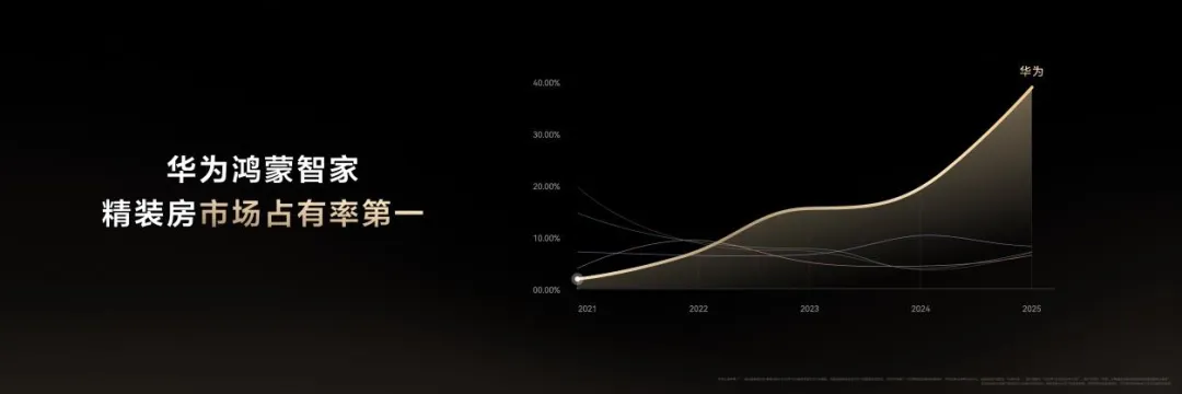据AVC数据显示,2025 年 1-10 月全国精装部品智能化楼盘中,华为鸿蒙智家以 38.9% 的份额稳居国内精装房智能家居市场榜首 —— 这一占比不仅实现了 “断层领跑”,更直接比第2-10名品牌总和(34%)还高出4.9个百分点,强势坐稳智能家居领域的头部 “领跑者” 位置。