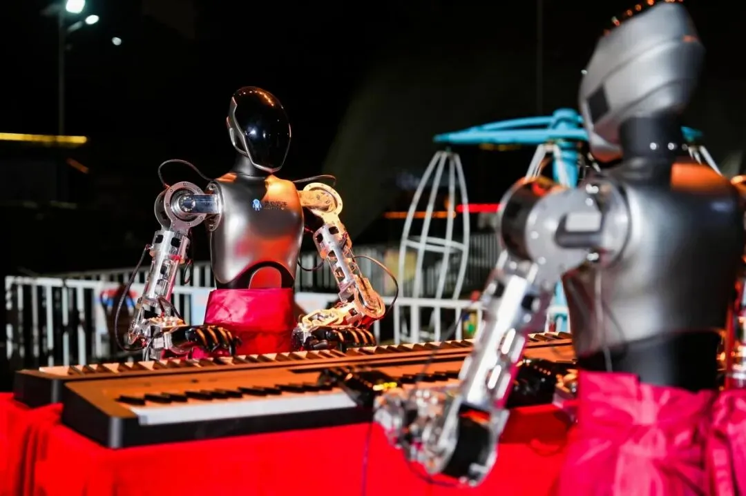 机器人“未来剧场”中,机器臂与真人合奏、机器狗协同共舞,呈现科技与艺术的跨界融合。