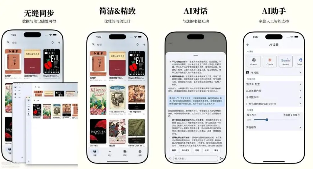 这一款开源免费的为热爱阅读的你精心打造的电子书阅读器。集成多种 AI 能力,支持丰富的电子书格式,让阅读更智能、更专注。现代化界面设计,只为提供纯粹的阅读体验。