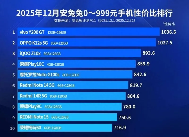 按理说,每个月初发布的性价比榜单通常是“闭眼买”的参考书,但在2026年1月这个时间节点回头看上个月的数据,情况却变得非常诡异。如果你现在完全照着2025年12月的安兔兔百元机榜单下单,不仅可能买不到便宜货,甚至可能多花一倍的冤枉钱。这个月最大的反常在于:榜单的时效性被厂商剧烈的调价策略击穿了。所谓的“第一名”如今已成价格陷阱,而真正值得入手的机型却因为统计滞后排在了后面。今天我们就剥离掉那些已经失效的数据,聊聊在这个时间点,谁才是百元机市场真正的“版本答案”。🧠 榜首的“价格倒挂”陷阱